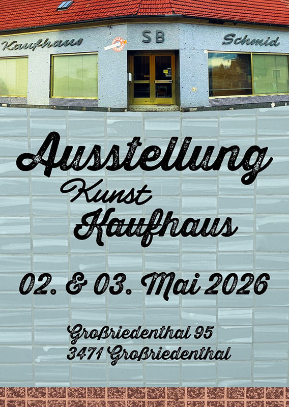 Zwei Lehrende und ehemalige Schüler*innen der Kunstschule Wien stellen am 2.+3.5.2026 in der ehemaligen Greißlerei der Familie Schuch in Großriedenthal 95, 3471 Großriedenthal künstlerischen Arbeiten aus.